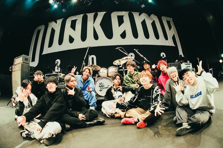 ブルエンのライブ後にはステージに3組が集結。記念撮影を行ったあと、辻村がマイクを握り「本当に寒い中ありがとうございます。『あ、こいつニューヨーク行くんだ』って今知った人もいるかもしんないすけど、音楽を愛しすぎてるので、これからも追求していこうと思ってます。12人とも音楽大好きなヤツらなんで、これからもどうぞ『ONAKAMA』をよろしくお願いします」と挨拶し、田邊が「ブルエンは解散でも活休でもないので! 皆さん、誤解のないようによろしくお願いしますね。これからも3バンド、がんばっていきたいなと思ってます!」とアピールをして「ONAKAMA 2023」を締めくくった。