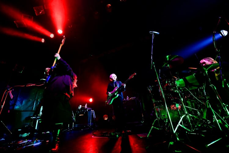 事前にアナウンスされていた通り、本公演はラストライブということもあり、多くのファンが集結。会場には「真空ホロウ写真展」と称してこれまでのライブ写真が飾られ、来場者を喜ばせていた。そして開演時間となり、松本、MIZUKI、サポートメンバーの是永亮祐(B)がステージに登場。緊張感が張り詰める中、3人は轟音で「シンデレラコンプレックス」を奏でてライブの口火を切る。松本が「真空ホロウへようこそ」というお決まりのフレーズでファンを歓迎したあとは、「知らんけど」「週末スクランブル」「バタフライスクールエフェクト」といった激しいナンバーが立て続けに披露され、場内の熱気を高めていった。