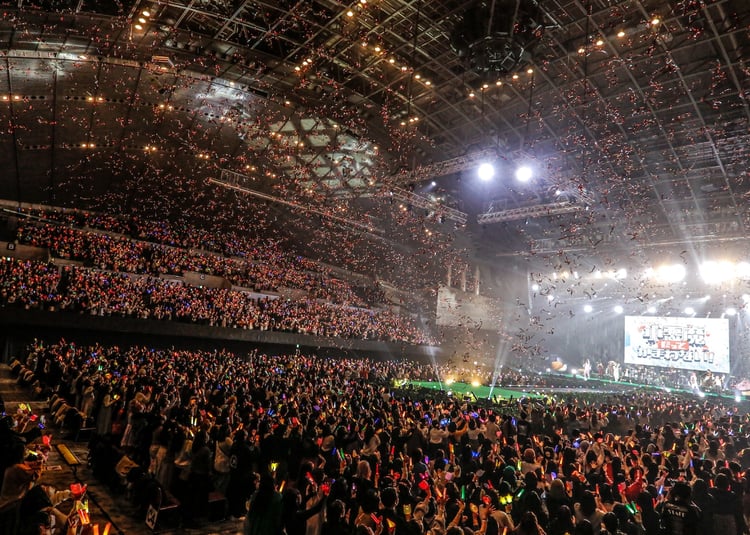 続いてKOOLは「素晴らしい景色をみんなありがとう。俺と一緒に遊んでみませんか、オーライ!?」と、ロックなハスキーボイスで「jelLy」、そしてめいちゃんと「アノニマスファンフアレ」をコラボ歌唱。そらるは「神っぽいな」、そしてめいちゃんとのコラボで「ジャンキーナイトタウンオーケストラ」を独自の世界観の中で歌い上げた。センラはハイテンションなパーティチューン「脳内シェイカー」を歌い、途中で縄跳びを手に二重跳びを繰り広げた。最後の登場となったGeroは「うどん」を熱唱しながら客席に「Choo Choo TRAIN」を踊らせ、そのカオティックな光景に自ら爆笑するというひと幕も。クライマックスではめいちゃんが「ブリキノダンス」「スクワッド!」を畳みかけてステージを降りた。