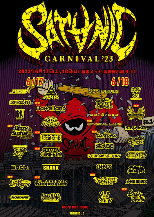 PIZZA OF DEATH RECORDSによる音楽フェス「SATANIC CARNIVAL 2023」の出演アーティスト第2弾が発表された。