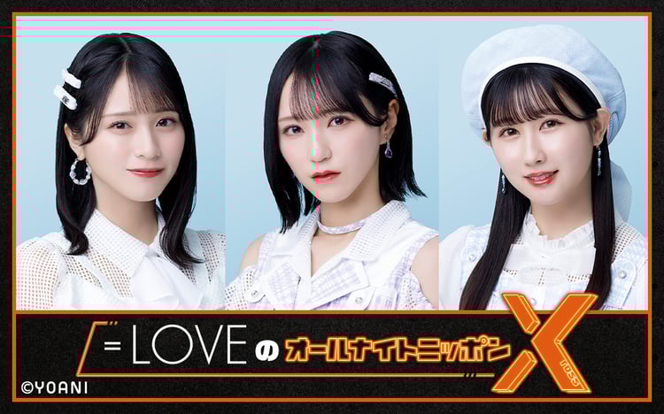 毎週月曜日にニッポン放送で「=LOVEのイコラフ」を放送中の=LOVE。「オールナイトニッポンX」のパーソナリティを担当するのは今回が初となる。番組では「イコトーク」と題して佐々木、野口、山本の3人が「普段喋らなそう」なことをテーマにしたコーナーや、佐々木と野口が普段からしているという「お野菜 擬人化サミット」のコーナーを展開。トークテーマや、野菜の擬人化案はリスナーから募集している。詳細は番組のTwitter公式アカウント(@ANN_Xross)で確認を。