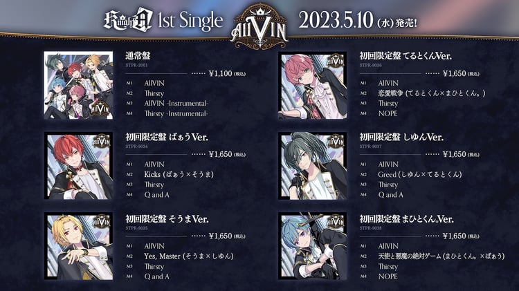 Knight A - 騎士A -が5月10日にリリースする1stシングル「AllVIN」の、初回限定盤の収録内容が明らかになった。