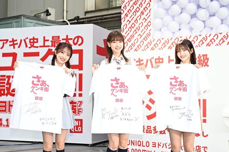 本日4月14日に東京・ヨドバシAkibaビル 7階に「ユニクロ ヨドバシ Akiba店」がオープン。“お客様第1号”としてAKB48の柏木由紀、向井地美音、平田侑希が同店を訪れた。
