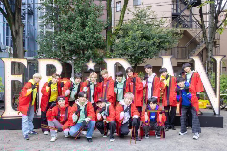 この日の活動に参加したのは、超特急のカイ、ユーキ、タカシ、シューヤ、ハル、ONE N' ONLYのTETTA、REI、EIKU、HAYATO、KENSHIN、原因は自分にある。の大倉空人、小泉光咲、桜木雅哉、長野凌大、武藤潤、吉澤要人の16名。朝10時、地域住民とEBiDANファンの中から募った清掃ボランティアが集まる恵比寿公園に姿を見せた彼らは、自身のネーム入りのパーカに「EBiDAN」「ソイヤ!」の文字がプリントされた赤い法被を羽織った出で立ちで清掃開始前のセレモニーに参加した。