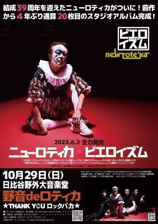 ニューロティカが6月2日にリリースするニューアルバム「ピエロイズム」の詳細が発表された。
