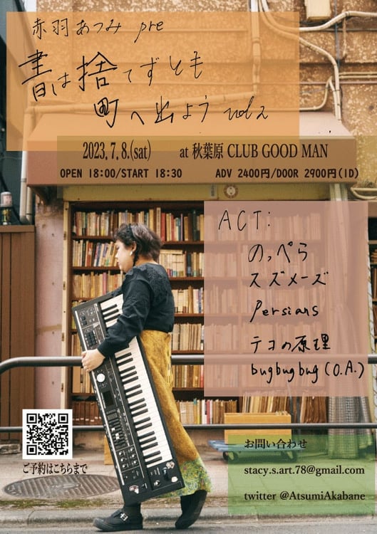 赤羽あつみ(テコの原理、ex. 曇ヶ原)の主催企画「書は捨てずとも町へ出よう」が7月9日に東京・西荻窪FLATにて開催される。