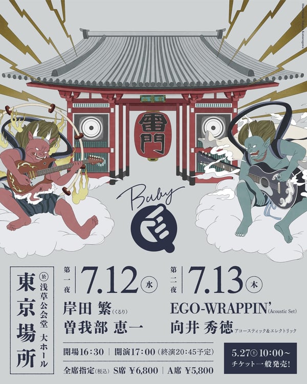 「BABY Q」は、2019年に初開催されたインドアフェス「Q」から派生した弾き語り形式の回遊イベント。今年は初日に岸田繁(くるり)と曽我部恵一(サニーデイ・サービス)、2日目にEGO-WRAPPIN'と向井秀徳アコースティック&エレクトリックがラインナップされた。なおEGO-WRAPPIN'はアコースティック編成での出演となる。