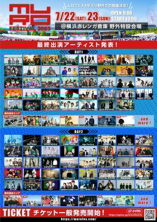 7月22、23日に神奈川・横浜赤レンガ倉庫で開催される音楽イベント「MURO FESTIVAL 2023」の最終出演アーティストが発表された。