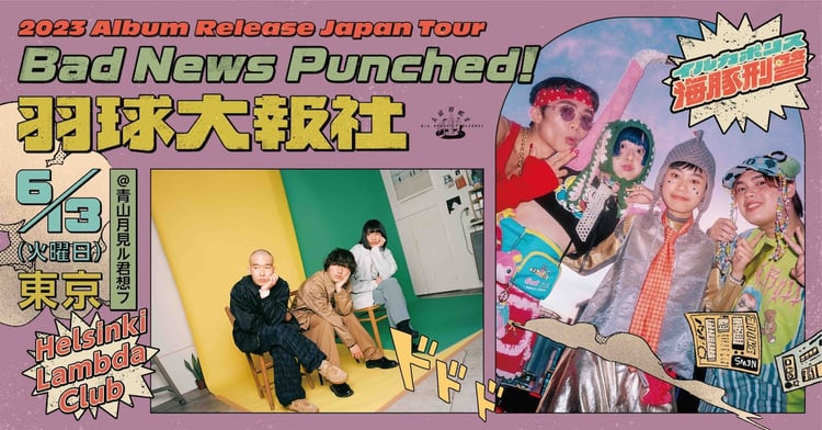 Helsinki Lambda Club、ミツメ、川本真琴、NALUCK、幽体コミュニケーションズが、6月に行われる台北発のバンド・イルカポリス海豚刑警の来日ツアー「イルカポリス海豚刑警 Japan Tour 2023 in Tokyo」に出演する。