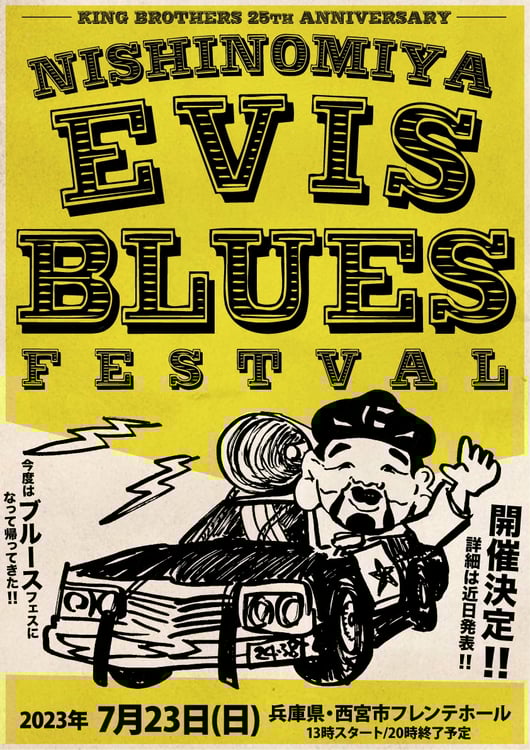 地元である兵庫・西宮でロックフェス「ゑびすロックフェス」を不定期で開催しているKING BROTHERS。今年はロックンロールの根源であるブルースを体感できる“ブルースフェス”として実施される。出演アーティストやチケット情報などの詳細は近日発表。西宮市民を対象にした割引や、若者向けの割引などが用意されているとのこと。