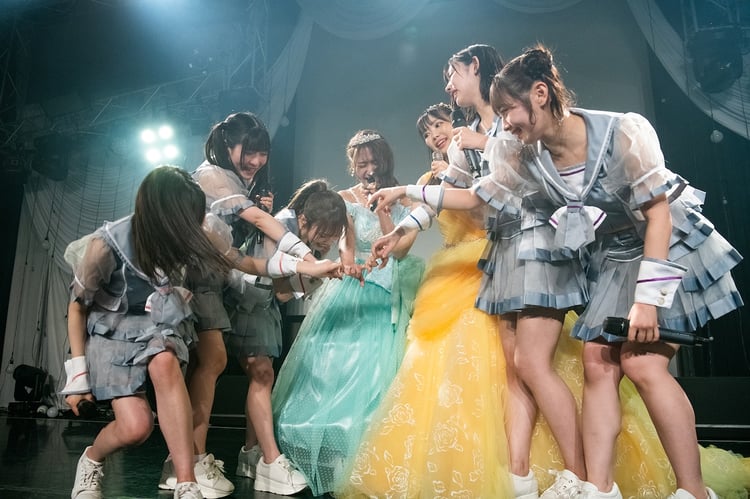 卒業公演ながら湿っぽさはなく、場内は明るいムードに満ちていたが、池田はおなじみの自己紹介「メルダとサラダ、どっちが好きー?」に対する盛大すぎる「メルダー!!」コールに感極まり、目に涙を浮かべてしまう。一方、吉沢は自己紹介をしようとするとなぜかマイクが音声を拾わないトラブルにみまわれ苦笑い。隣の近藤沙瑛子からマイクを受け取った吉沢が「今日でアイドル卒業するので、誰か結婚してくださーい!」と叫ぶと、フロアは彼女の担当カラーである黄色のペンライトでいっぱいになった。