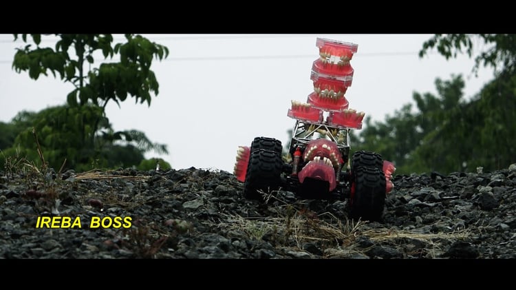 「入れ歯」はxiangyuが5月に配信リリースした楽曲。松田瑞季監督のもと制作されたMVでは、入れ歯を乗せたラジコンが岩場や川を走行している。