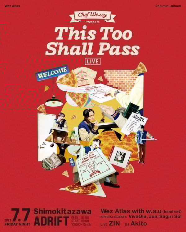 このイベントは、Wezが3月に配信リリースした2ndミニアルバム「This Too Shall Pass」のレコ発企画。ライブアクトとしてWezとZIN、DJアクトとしてDJ AKITO、ゲストとしてVivaOla、Jua、Sagiri Sólが出演する。なおWezはこの日、クリエイティブレーベル・w.a.uを迎えたバンド編成でのパフォーマンスを披露する。チケットはイープラスにて販売中。