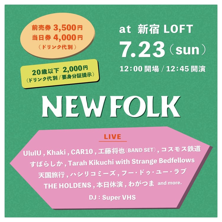 7月23日に東京・新宿LOFTでライブイベント「NEWFOLK」が開催される。