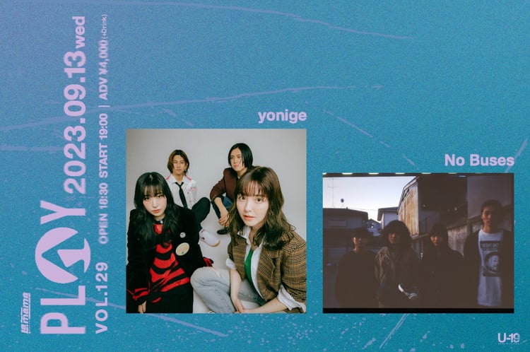 「PLAY」は渋谷La.mamaが主催するツーマン企画。今回はyonigeとNo Busesが出演する。10代は無料で入場可能。詳細は渋谷La.mamaのオフィシャルサイトで確認しよう。