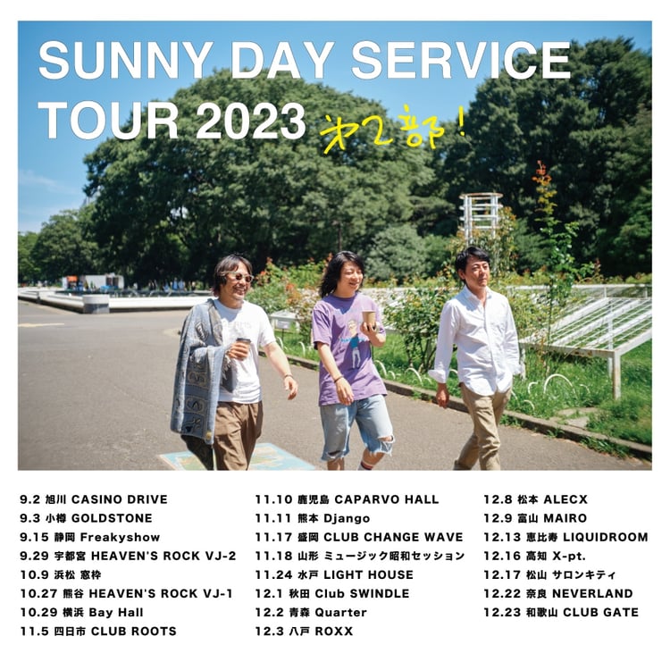 サニーデイ・サービスが9月から12月にかけて全国ツアー「サニーデイ・サービスTOUR 2023」の追加公演を行う。