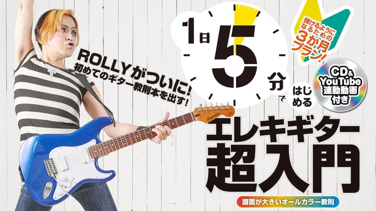 ROLLYのギター教則本「1日5分ではじめるエレキギター超入門 ~弾けるようになるための3か月プラン!~(CD付&YouTube動画連動)」が7月23日に発売される。