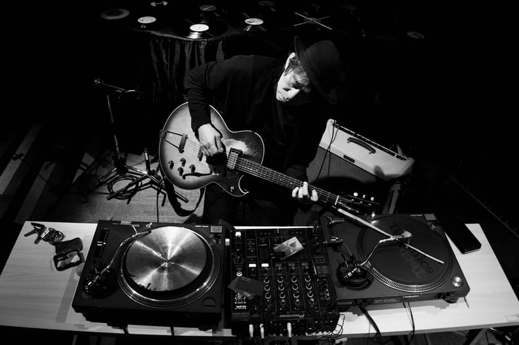 ギターとターンテーブル。数十年もの付き合いになるこの楽器たちでわたしがやっていることといえば、弦の振動や回転体との摩擦で生まれた電気信号を増幅させたりフィードバックさせたりってことに過ぎないなって、しみじみと思います。なんでそんなことをやっているのかと言われても、自分でもよくわかりません。ただ、何よりこいつを即興で、とりわけライブであれこれやることが大好きなんです。これまで一体どれだけの数、そんな演奏をしてきたことか、本当に数え切れないくらいです。そのわりには即興のソロでのスタジオ録音はほとんど残っていません。即興はその場限りでいいや…そう思っていましたから。