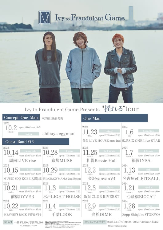 Ivy to Fraudulent Gameが10月より全国19カ所を回るツアー「揺れる」を開催することが決定した。