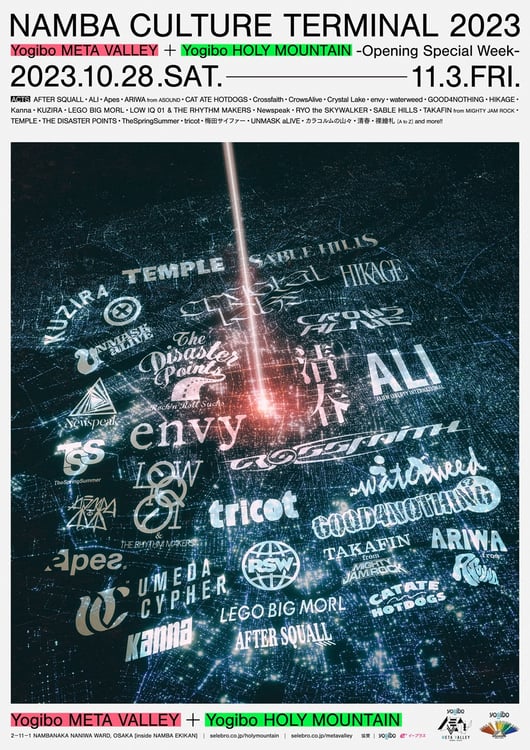 10月28日に大阪・南海電鉄なんば駅高架下の商業空間、なんばEKIKAN内にオープンする新たなライブハウスMETA VALLEYとHOLY MOUNTAINのこけら落とし公演「Namba Culture Terminal 2023 -Opening Special Week-」の詳細が発表された。