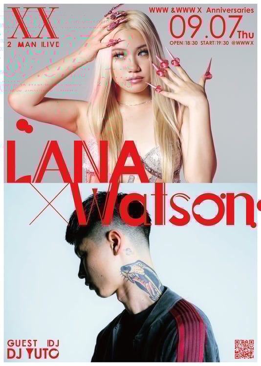 これはWWWが新たに手がけるヒップホップアーティストのツーマンライブシリーズ 〈 XX (ダブルエックス)〉の第1回として行われるもの。メロディセンスとハスキーボイスを武器とするLANAと、ユーモアを兼ね備えた等身大のリリックや独自のフロウで支持を受けるWatsonがそれぞれ40分のライブで自身のアーティスト性を表現する。