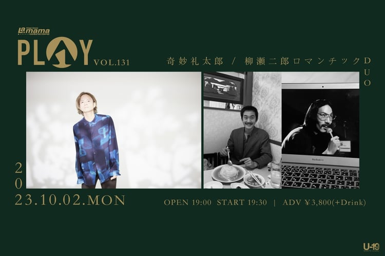 奇妙礼太郎と柳瀬二郎ロマンチックDUOによるツーマンライブ「PLAY VOL.131」が10月2日に東京・渋谷La.mamaで開催される。