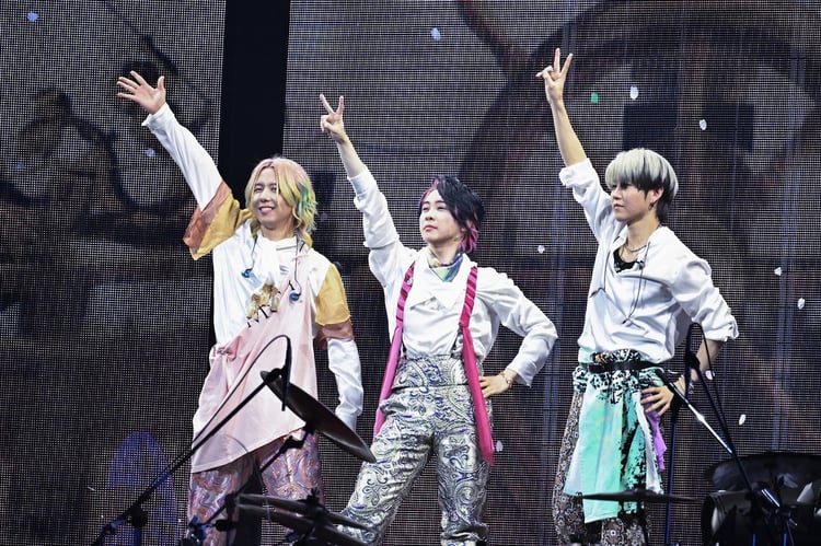 「皆さんへの感謝の気持ちとこれからの祝福を乗せて、最後に歌いたいなと思います。今日は一緒にいてくれてありがとうございました。なるようになるぞ、人生! そう信じような!」という大森の言葉を経て、彼らは「ケセラセラ」を演奏。日々を生きる人々に祝福の言葉とエールをまっすぐに贈る。最後に船から見えたのは、虹がかかった澄み渡るような青空。美しい紙吹雪に彩られながら、3人は笑顔で花道を歩いてステージを去っていった。