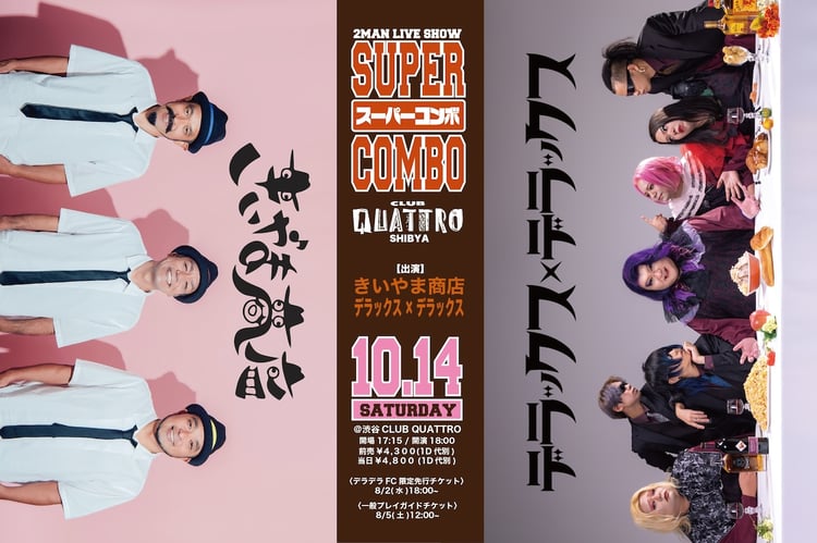 デラックス×デラックス、きいやま商店によるツーマンライブ「スーパーコンボ」が、10月14日に東京・渋谷CLUB QUATTROで開催される。