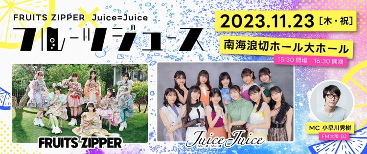 このイベントで2組は、それぞれライブを披露するほか、後日FM大阪で放送されるラジオ番組の公開収録を行う。FRUITS ZIPPERとJuice=Juiceのオフィシャルファンクラブでは、イベントのチケット先行抽選予約を8月13日23:59まで受け付けている。
