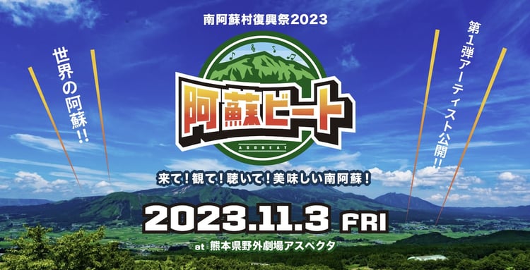 音楽と食による新しいエンターテインメントを通して、エシカルビレッジ"南阿蘇"の魅力を満喫いただければと思います。11月3日、阿蘇ビート2023にて多くの皆様とお会いできるのを心よりお待ちしています。