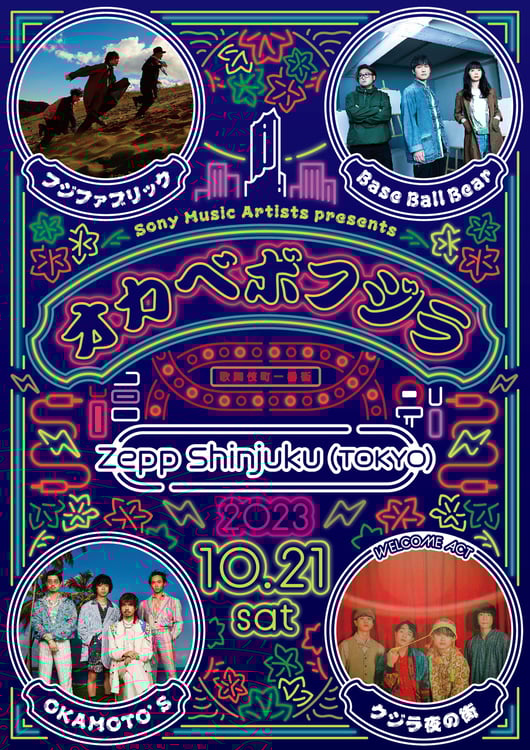 このイベントにはSMA所属のフジファブリック、Base Ball Bear、OKAMOTO'Sの3組と、“WELCOME ACT”のクジラ夜の街という計4組が出演。イベントタイトル「オカベボフジラ」は、この4組のバンド名を組み合わせたものだ。各バンドのオフィシャルサイトではチケットの先行抽選の予約申し込みを受け付けている。