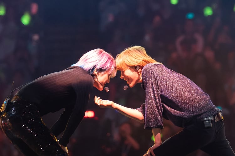 今年6月に「SHALALA」でソロデビューを果たした彼は、タイトル曲と同作の収録曲「GWANDO」をダンサーとともにパフォーマンス。また自身のソロステージに先んじて、WayV・テンとともに2人でステージに上がり「Baby Don’t Stop」も披露した。この曲は、2018年にNCT U名義で公開されたテヨンとテンのユニット曲で、5年が経過した今もなおファンの間で熱狂的な人気を誇る。レジェンドとの呼び声高い人気楽曲であるのにも関わらず、これまでなかなか披露されてこなかった背景もあり、サプライズでの“ベビドン”は現地の観客のみならずSNSでも大きな話題を呼んだ。