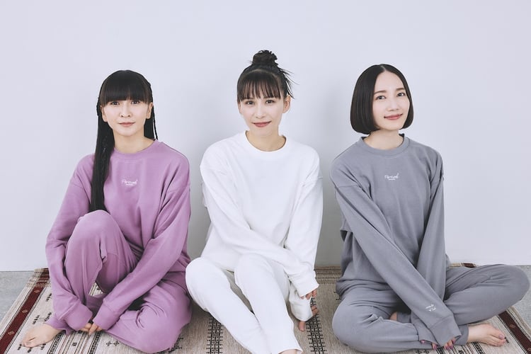 「BAKUNE」シリーズはPerfumeも愛用している、睡眠時の着用を想定したウェア。今回のコラボアイテムは「BAKUNE」のスウェットタイプがベースとなっており、Perfumeのロゴ入り上下セットがメンバーこだわりのカラーリング“popo White”“British Gray”“Dusty Pink”の3色で展開される。価格は税込2万4500円。購入者には特典として限定デザインのランドリーバッグが付属する。