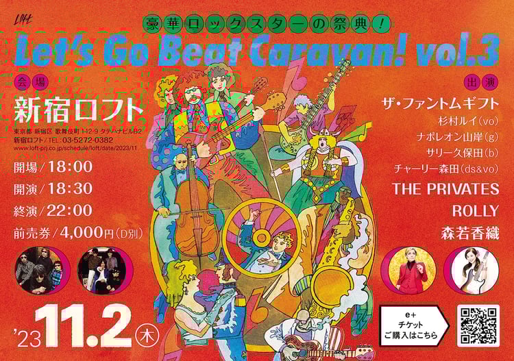11月2日に東京・新宿LOFTで開催されるライブイベント「Let’s Go Beat Caravan! vol.3」にザ・ファントムギフト、THE PRIVATES、ROLLY、森若香織(GO-BANG'S)が出演する。
