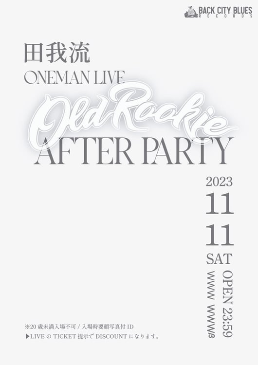 田我流が11月11日に東京・日比谷公園大音楽堂(日比谷野音)で行うワンマンライブ「OLD ROOKIE」のアフターパーティが東京・WWW / WWWβで開催されることが決定した。