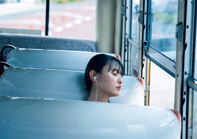 バスの中で撮影したカットはどれもお気に入り。音楽を聴いているのですが、有線イヤホンってところが私らしいんじゃないかな?