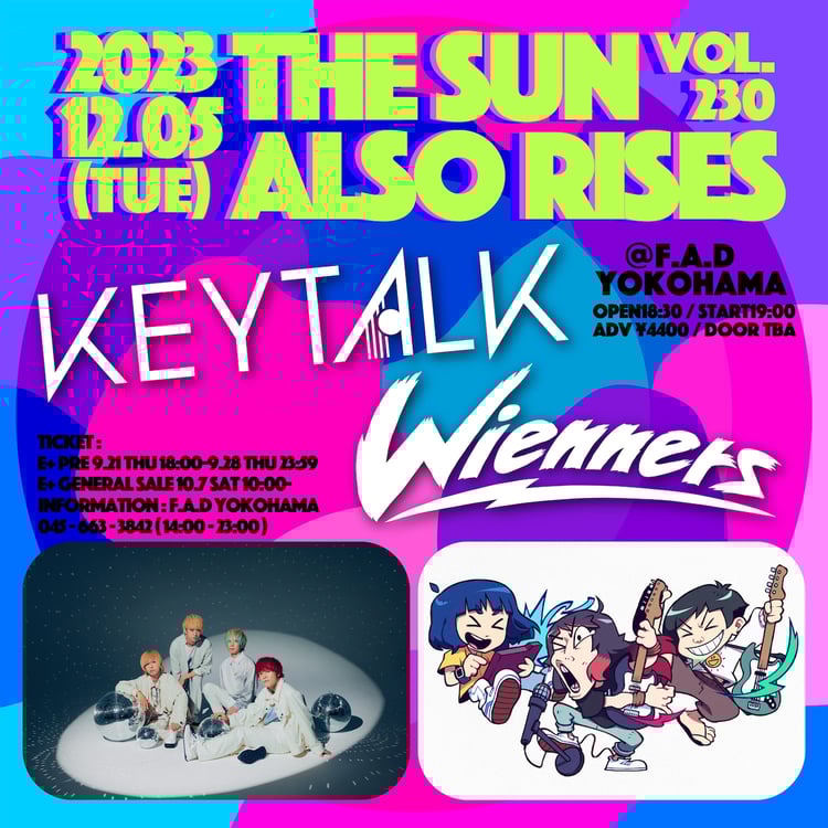 「THE SUN ALSO RISES」はF.A.D YOKOHAMAが主催するツーマン企画。今回はKEYTALKとWiennersによるツーマンライブが繰り広げられる。