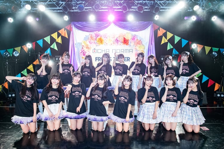 「みんなー! 元気ですかー! もっともっと声出せるよね?」と声出しを煽り、メンバー紹介ソング「うぇるかむとぅ~ざ♡ふるっぱー!」で初見の観客も楽しませるFRUITS ZIPPER。ピアノの音色が印象的なデビュー曲「君の明るい未来を追いかけて」をエモーショナルに歌ったあと、バレンタインソング「ハピチョコ」でキュートな魅力を全開にすると、グループを知らしめた代表曲「わたしの一番かわいいところ」をここで披露する。大ヒット曲でフロア全体を沸かせた7人は、OCHA NORMAとの交流を祝う気持ちを込めて「超めでたいソング ~こんなに幸せでいいのかな?~」を最後に歌唱。メンバーコールやハンドクラップでフロアは沸き上がり、ふるっぱーは声をそろえて「おめでとう!」と叫んだ。