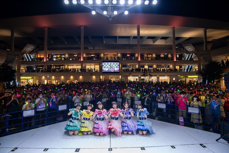 観客がメンバーを自由に撮影できる「ロックオンフリータイム」を経て披露されたのは新曲「かわいいメモリアル」。繰り返される「かわいい」というフレーズが、明るくポップなメロディに乗せて夜の野外に響き渡った。グループのマインドを表現したポジティブなメッセージソング「超ときめき♡宣伝部のVICTORY STORY」でライブの盛り上がりはさらに加速し、ラストには代表曲「すきっ!~超ver~」が届けられる。TikTokを通じてブレイクしたこの曲が始まると、超とき宣のことを知らなかった買い物客も6人の歌に反応。会場に大きな高揚感が広がった。