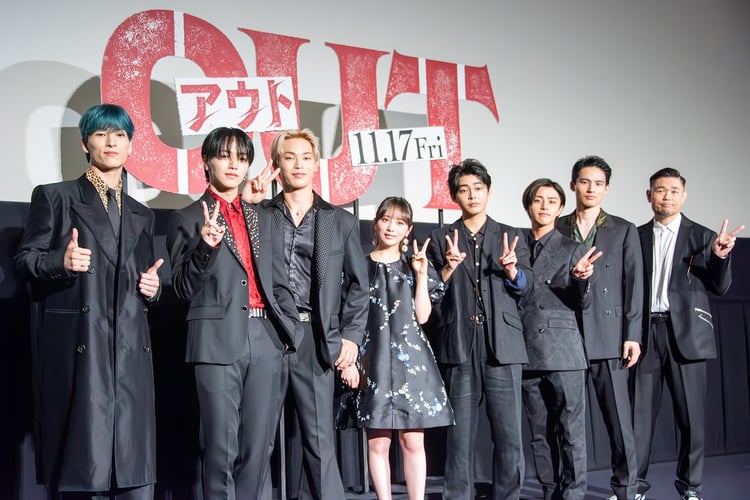 11月17日に全国公開される映画「OUT」は、累計発行部数650万部を超える同名ヤンキー漫画の実写化作品。品川の中学からの友人・井口達也の青年時代が実録ストーリーとして描かれる。主人公・井口達也役を倉、暴走族「斬人」の総長・丹沢敦司役を醍醐、副総長・安倍要役を⽔上、特攻隊長・長嶋圭吾役を與那城、親衛隊長・目黒修也役を⼤平、期待のルーキー・沢村良役を⾦城、ヒロイン・皆川千紘役を与田が務める。