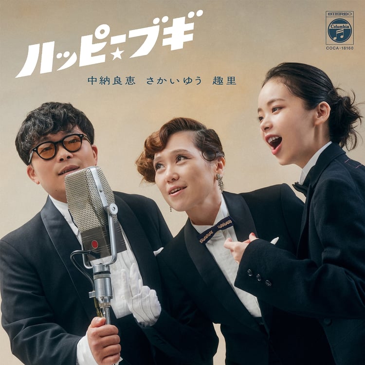 「ハッピー☆ブギ」は、ドラマの音楽担当である服部隆之が手がけた楽曲。11月15日にCD、11月22日にアナログ盤でもリリースされる。特設サイトではこの楽曲のために撮り下ろされた中納、さかい、趣里のアーティスト写真とコメント動画を公開中。アーティスト写真は、3人がシックなタキシードに身を包んだ、クラシックなスタイルながらも歌が聞こえてくるようなビジュアルとなっている。