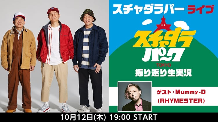 スチャダラパーとMummy-D(RHYMESTER)が生出演するニコニコ放送の特番の振替日程が10⽉12⽇に決定した。