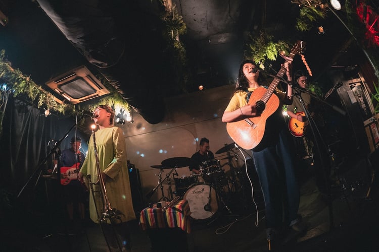 Ålborgは2022年に横浜で結成された男女混合の5人組インディーロックバンドで、同年8月に1stシングル「Girl」を発表。今年7月には最新シングル「Change / Memory」をカクバリズムからリリースし、野外フェスティバル「FUJI ROCK FESTIVAL '23」の「ROOKIE A GO-GO」ステージへの出演を果たした。そんなÅlborgにとって初の対バン企画となる「Ålborg pre. "Where is Ålborg?”」は、バンドのホームである横浜B.B.STREETの26周年企画としても実施。対バン相手として横浜の音楽シーンの大先輩であるサイプレス上野とロベルト吉野が登場したほか、オープニングや転換中、クロージング時にはDJを務めたLatin Quarter(Pan Pacific Playa)、角張渉(カクバリズム)、片山翔太がそれぞれのプレイでイベントを彩り、場内には終始フレンドリーなパーティムードが流れていた。