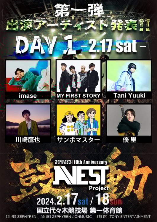 2024年2月17、18日に東京・国立代々木競技場第一体育館で行われるライブイベント「Zephyren 10th Anniversary A.V.E.S.T project -鼓動-」の第1弾出演アーティストが発表された。