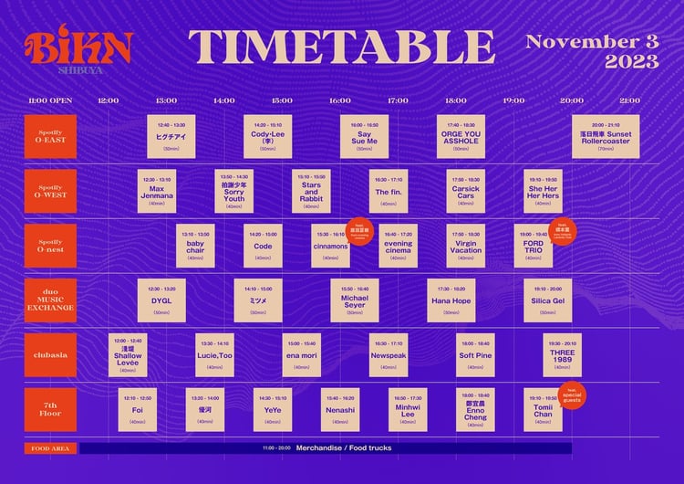 2023年11月3日(金・祝)東京都 Spotify O-EAST / Spotify O-WEST / Spotify O-nest / Spotify O-Crest / 渋谷duo MUSIC EXCHANGE / club asia / 渋谷7th FLOOR