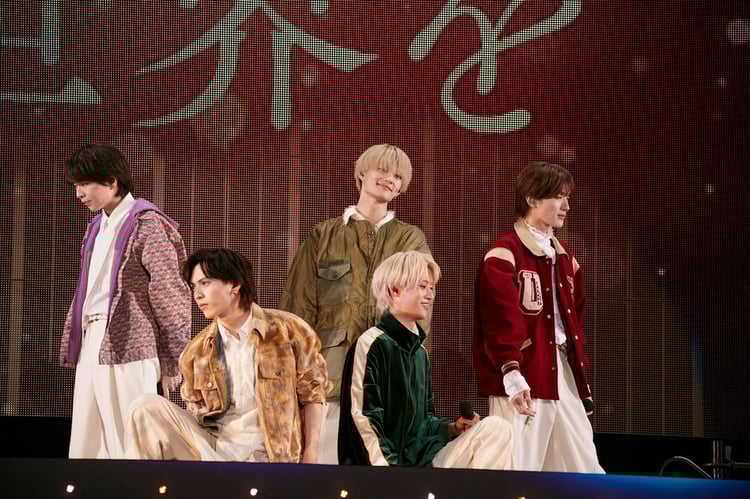 心地よい高揚感が充満する横浜アリーナのムードに、吉田は「リハのときも楽しかったのよ、俺。でも比べものにならないわ」と言葉を漏らす。メンバーは一様に、ライブの演出を担当した塩崎に「ありがとう太ちゃん」と声をかけ、塩崎はこれに「いやいや、それを言ったら山中さんが担当した衣装もいいじゃない」と返した。そして、吉田が伝えたのは「この半年は、今日の日のために費やしてきたと言っても過言ではなくて」という、この日のステージに懸ける5人の思い。「5人で活動できることも、皆さんが応援してくれることも、1つも当たり前のことはないっていうことを、この『HAPPY! HAPPY! HAPPY!』で感じています。これからも僕らが皆さんにとっても幸せになれたら」と語る彼の言葉に、舞台上の4人もみ!るきーずも、真剣に耳を傾けた。