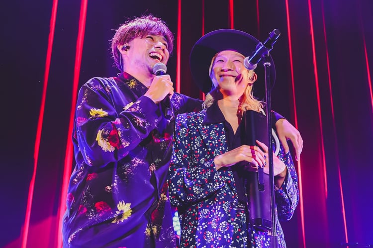 その後は「夏のペダル」のカップリング曲「頑張ることに決めた」へと続き、昨年と同じく古い曲から新しい曲へ、吉田山田の14年の歴史を“カップリング曲”といういつもと違う視点で切り取るようなセットリストが展開された。山田義孝(Vo)は「音楽は魔法のようで、タイムカプセルみたい。歌いながら、曲を作っていたときの部屋の匂いとか、季節の風を感じている。あのときの自分に励まされたような気持ちになる」と語り、2人がファンと過ごした長い時間の流れに思いを馳せていた。