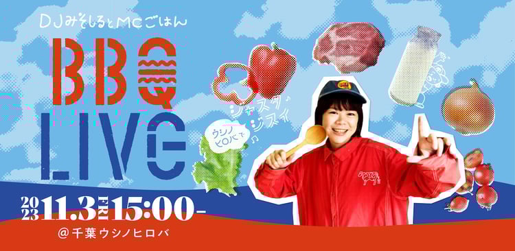 このイベントでは、「おいしいものは人類の奇跡だ!」をモットーに活動するDJみそしるとMCごはんが、牛が暮らすキャンプ場・千葉ウシノヒロバとコラボし、ライブパフォーマンスと楽曲にちなんだバーベキューメニューを提供。ライブでは、本イベントのために書き下ろされたコラボ曲も届けられる。また会場では限定のコラボグッズも販売される。