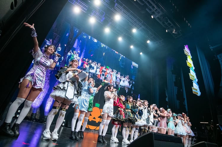 続いて登場したのは、石原さき、姫野ひなの、中本こまり、赤間四季の4人による#Mooove!。今年4月に結成されたばかりの、ゼロイチファミリア第4のアイドルグループだ。デビルナース衣装の4人は「Shooting Star」でライブをスタートさせると、「クライマックスRookies!」「カタカナサマー」「いっせーのーで!」「最後の花火」の計5曲を歌い、先輩グループ3組のファンにもフレッシュな魅力をアピールした。初めての「HASHTAGNIGHT」ハロウィンイベント参加にメンバー4人は大喜び。「貴重な時間に#Mooove!を観ていただき、ありがとうございました!」と謙虚に挨拶してステージを去った。