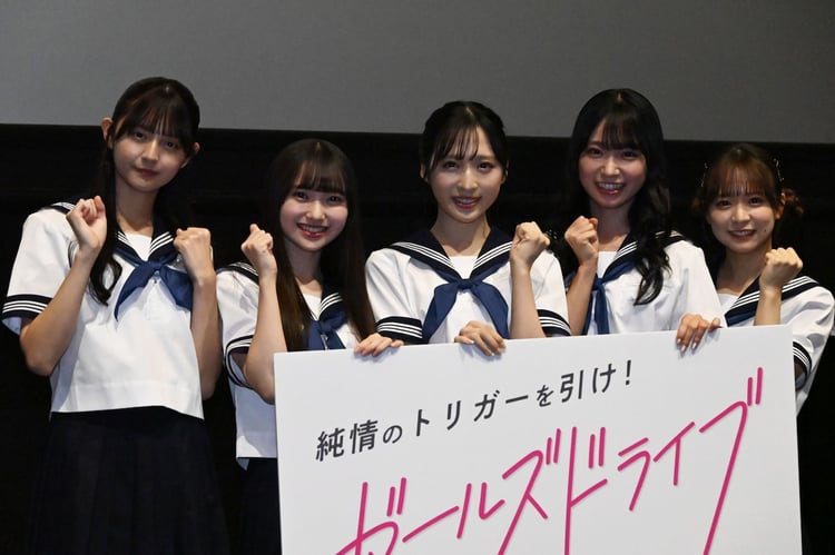 映画「ガールズドライブ」の先行プレミア上映舞台挨拶が本日11月2日に東京・TOHOシネマズ 錦糸町オリナスで開催され、AKB48の小栗有以、山内瑞葵、倉野尾成美、山崎空、久保姫菜乃が登壇した。